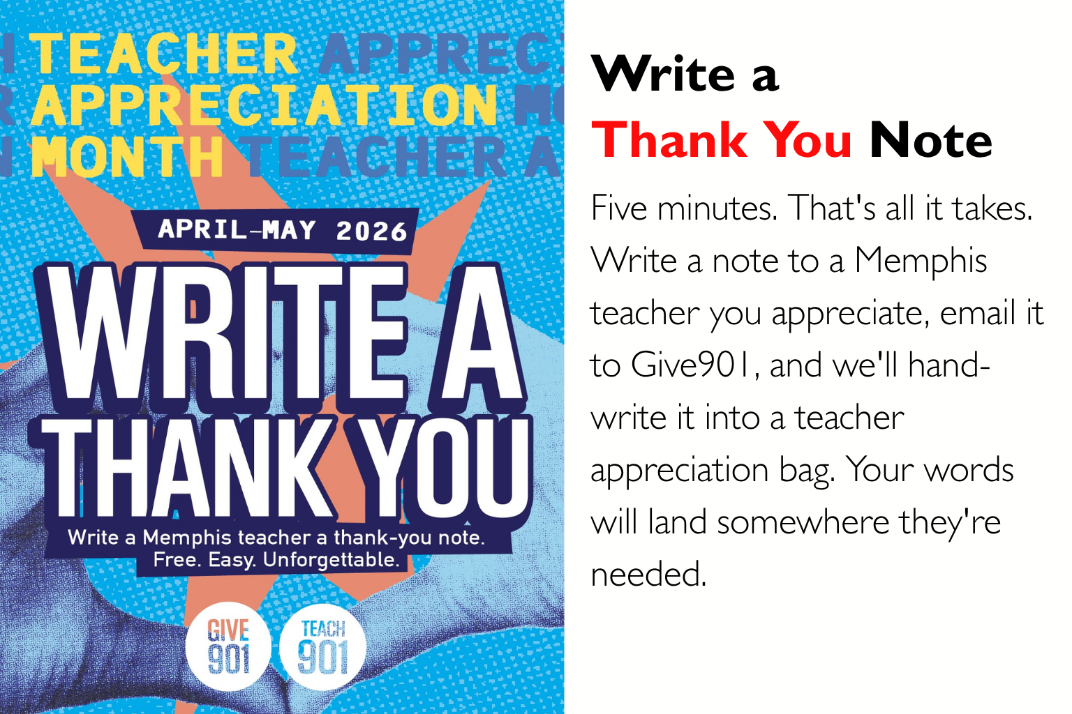 Behind every successful student, there's a teacher who refused to give up on them. This month, Give901 and Teach901 are asking our community to match that energy, and there's a way for everyone to play a part.